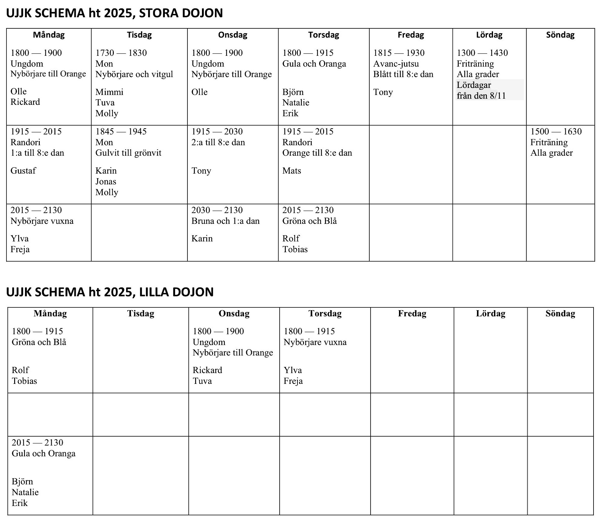 - Terminen börjar onsdagen den 20/8, alla behöver anmäla sig på: https://medlem.ujjk.se